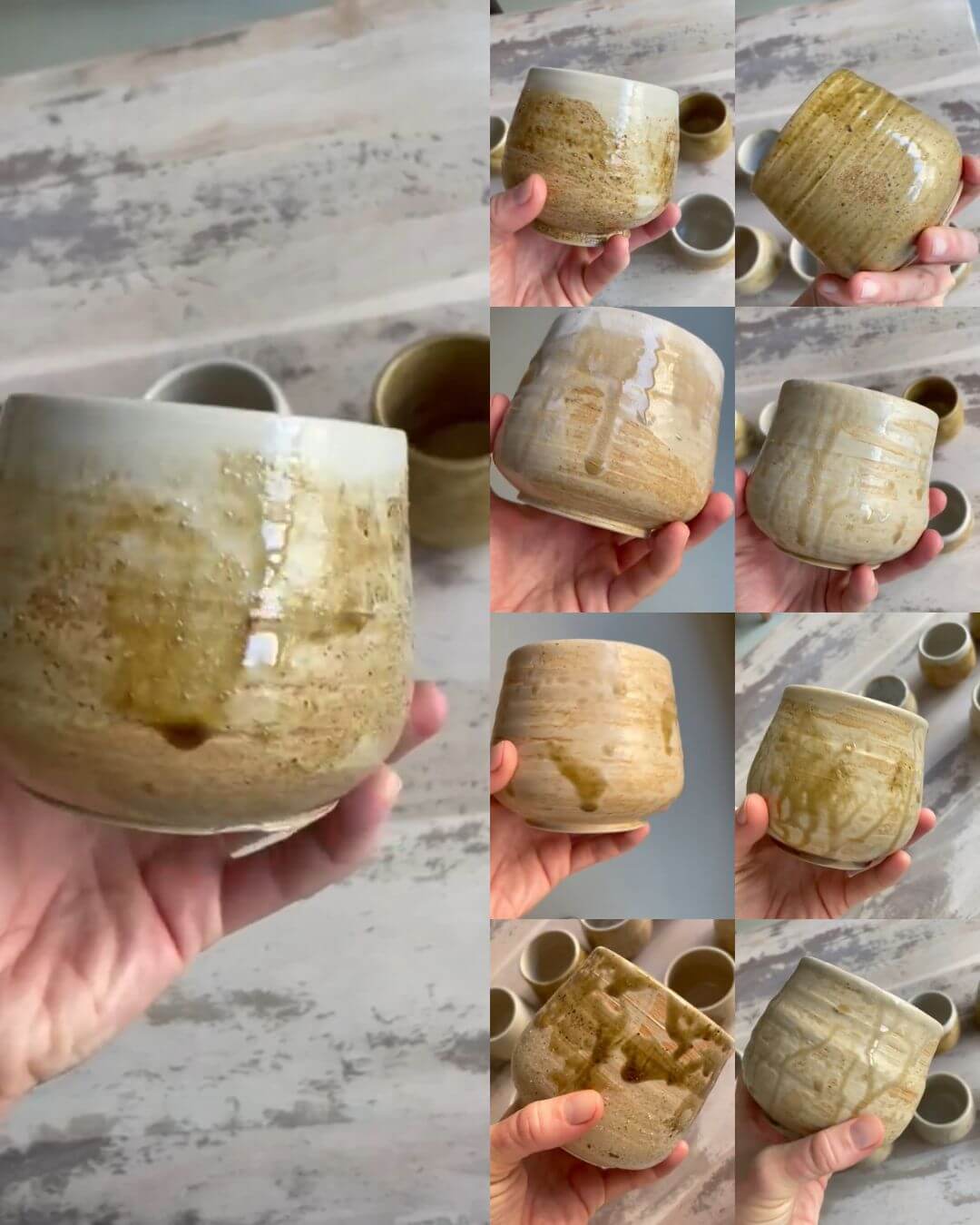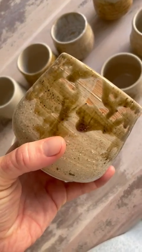 Der Ton jeder Tasse wurde auf altertümliche Weise mit selbst hergestellter Holzascheglasur veredelt. Die Asche stammt aus drei besonderen Landschaften: